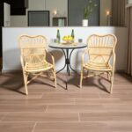 - Sustainable rattan and woven resin seats.