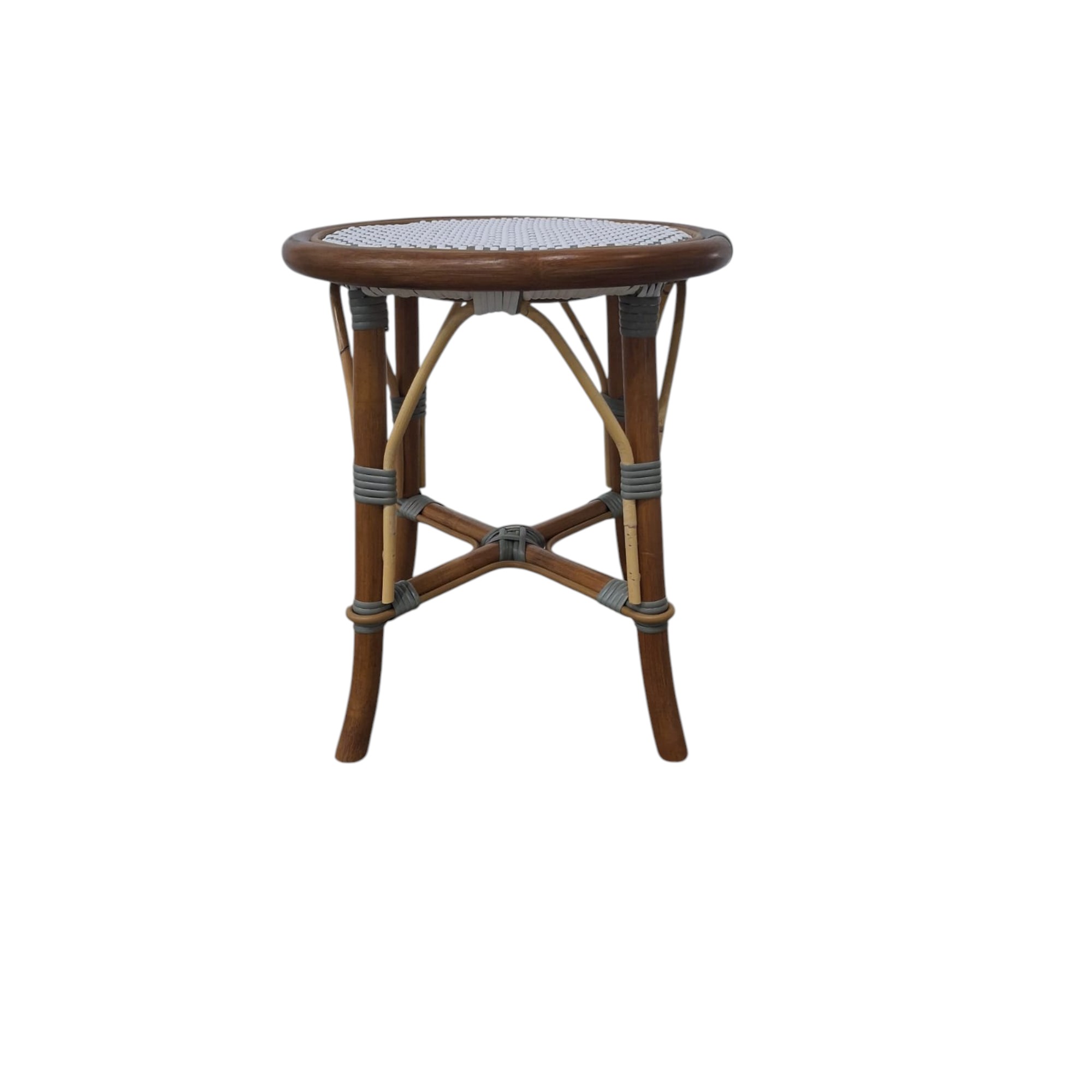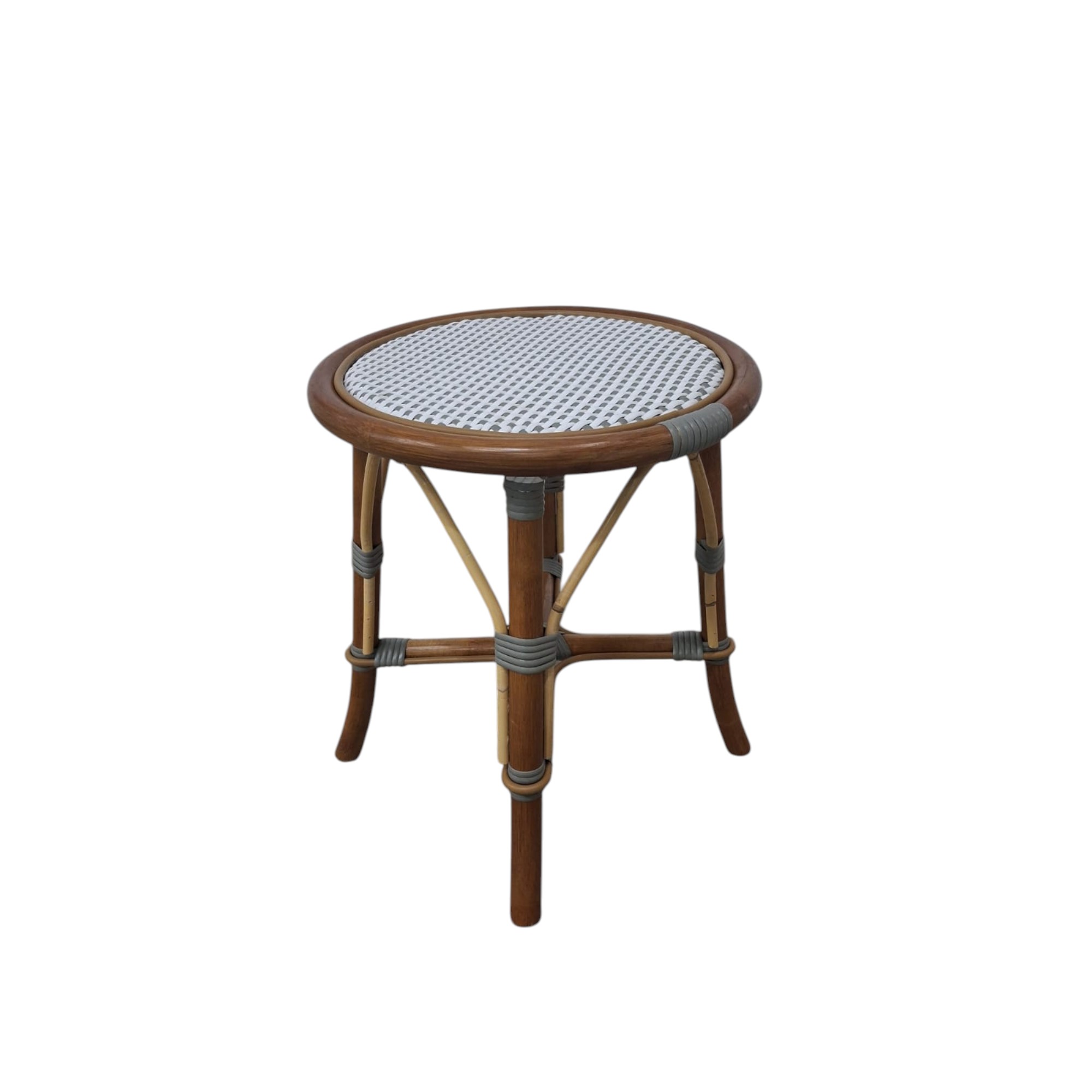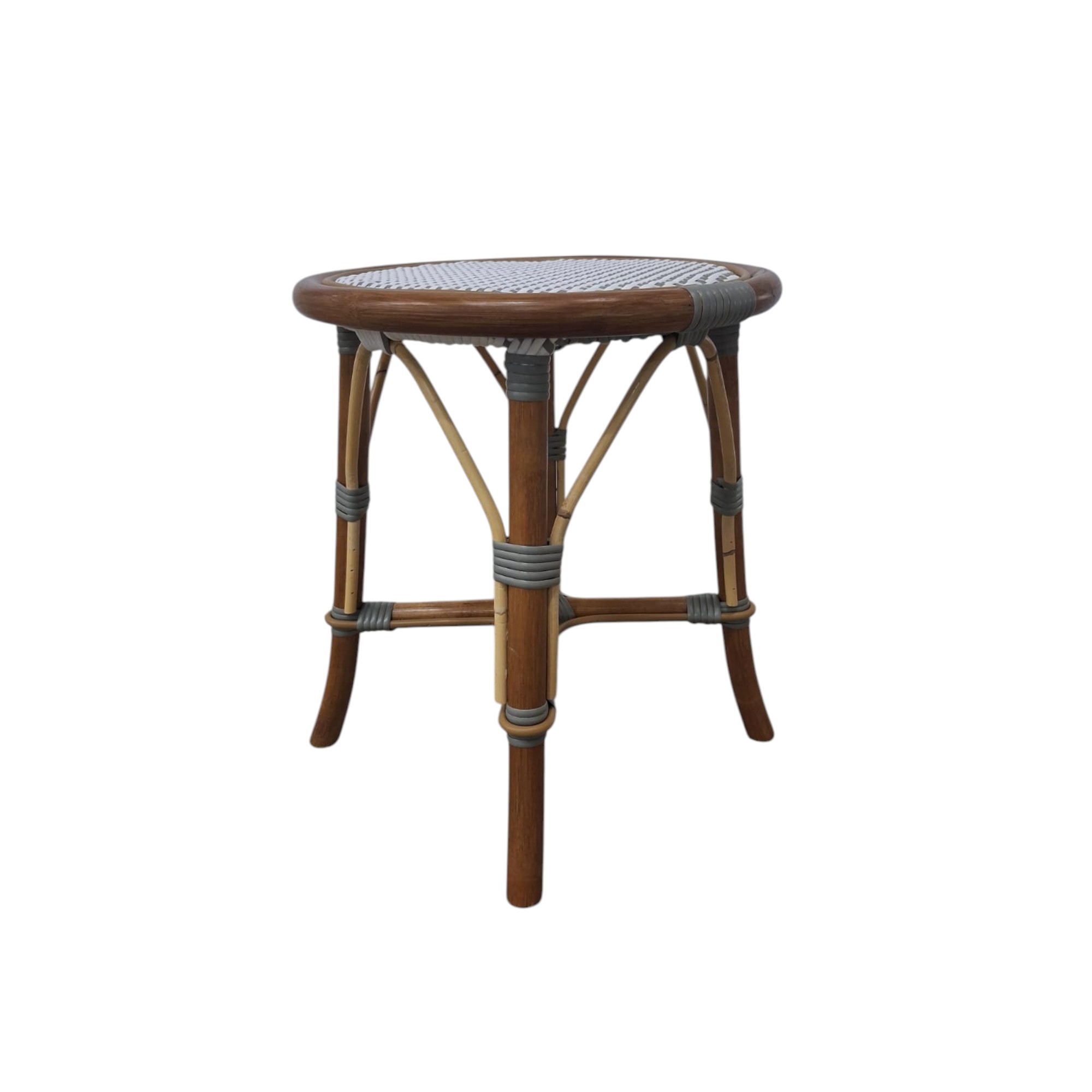 The backless White and Grey Cafe Stool is our iconic French Cafe bistro chair, every rattan frame is bent and shaped by hand. Each bears marks of distinction — from harvest, an artisan touch, and nature’s material maturing in time.