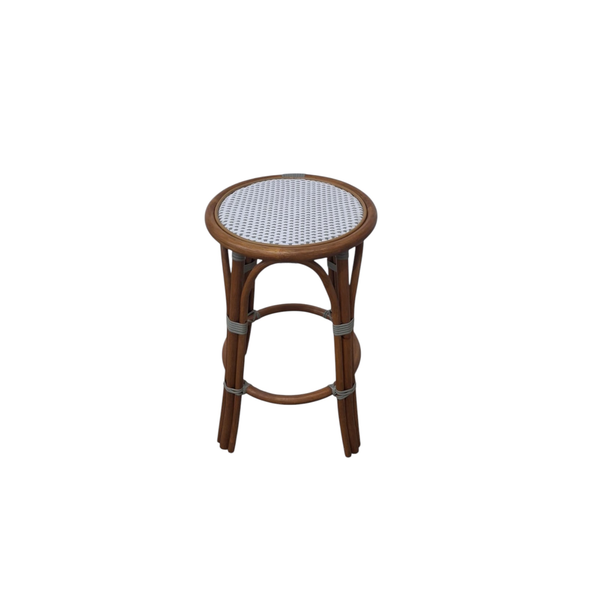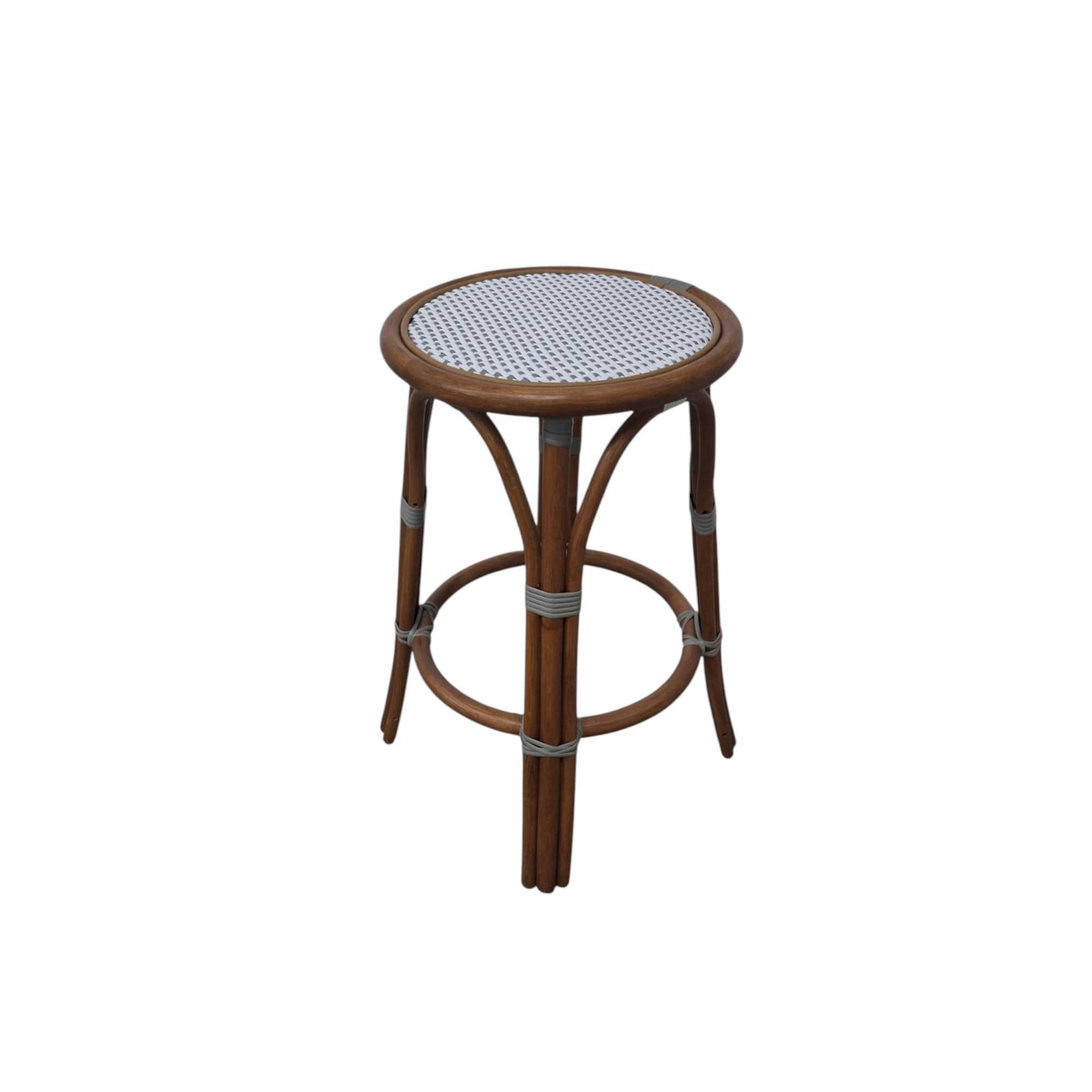 The backless White and Grey Cafe Stool is our iconic French Cafe bistro chair, every rattan frame is bent and shaped by hand. Each bears marks of distinction — from harvest, an artisan touch, and nature’s material maturing in time.